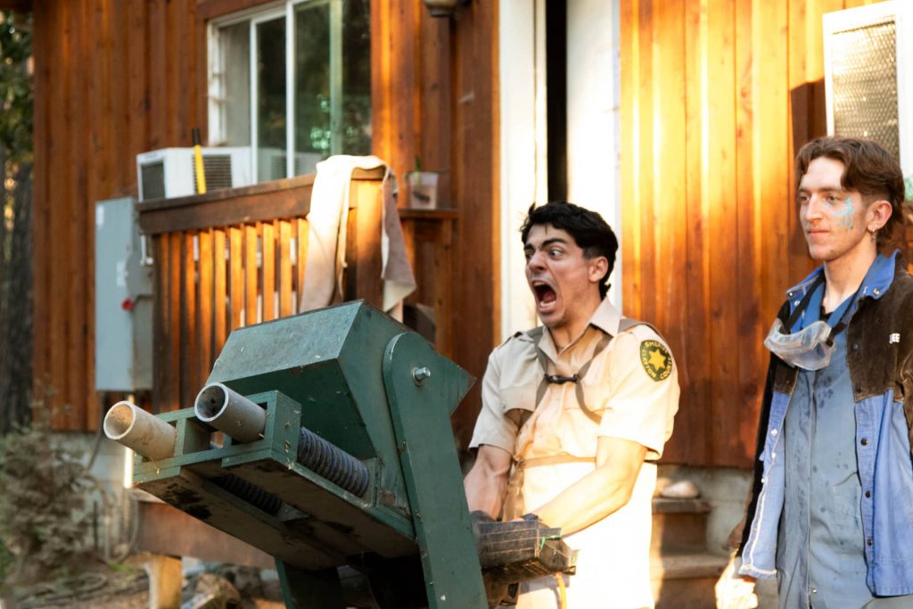 A cabin act making a giant gummy worm!